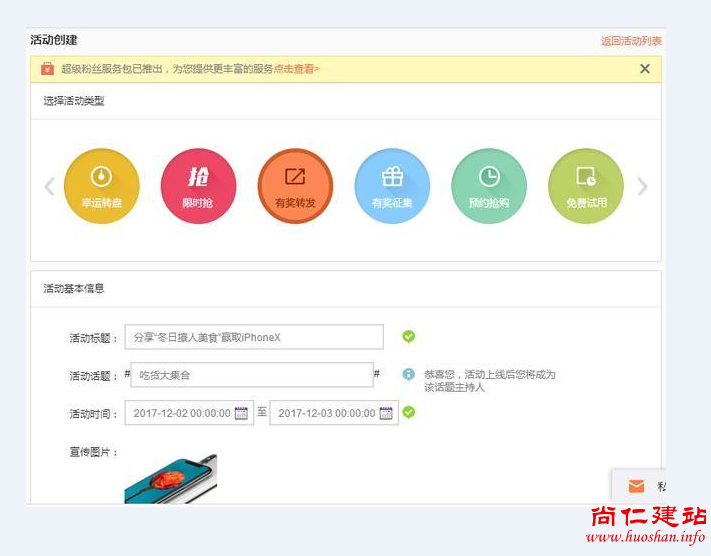 活动时间,设置活动开始时间必须要在设置活动当下时间的24小时之后