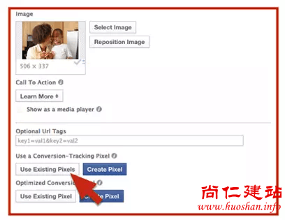在Power Editor中的点击使用转换跟踪像素(Use a Conversion-Tracking Pixel),您可以选择使用现有的pixel,或者创建一个新的pixel。