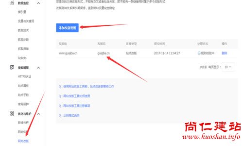 到此就完成了域名跳转的工作,但是为了完美的进行seo的衔接,我们还有做一步操作,就是去搜索引擎中,提交站点改版中的域名改版操作,百度搜索资源平台对改版规则的校验时间范围为0.5——2小时,改版生效时间范围为12——48小时。