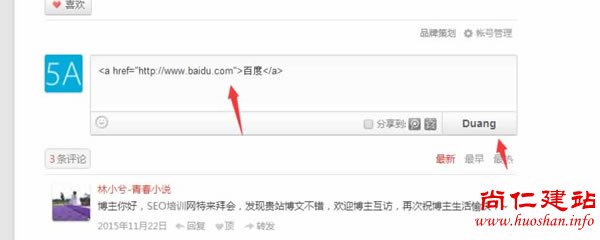 上面三个网站已经亲测外链不仅可以被搜索引擎抓取,还会加入到百度站长平台,所以这里也提醒下一些SEO朋友,有些东西有没有用,实践是最好的方法。如果朋友细心,我相信大家看到了最后一张图片的锚文本外链和前面的外链有所不同,那就是这个外链并不是在名称上面留言,而是在评论内容里面留下锚文本,方法也很简单,敢于尝试你就可以做到,懂代码的朋友把超链接代码放入评论即可产生效果,如下图所示: