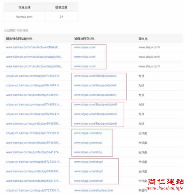 如上图数据所示,细心的朋友就会发下,尽管这个网站收录的外链是21条,但是所谓的3条是自己网站的链接最多采用三条,也就是说一般情况下,自己的网站的一个页面在另外一个网站发布锚文本文章,会计算三次加分进入到百度站长外链分析数据中。如果做SEO朋友的再细心一点提出疑问,发现锚文本为九球的数据为何是6 条,并且也是同一条链接。如果仔细看下其实还是有区别的,区别在于一个斜杠,斜杠代表了你的地址指向了域名下面的一个目录,所以不并不是同一个链接,产生的加分也同样不是一个数据值。但是,有些时候也有例外,会加入4条甚至更多,但是这属于小概率事件,如下图所示:
