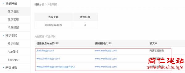 从上图我们可以看出,几乎所有网站的外链都是被加入了3条,当然,很多朋友会提问了,我的网站怎么不是三条,有些是几百条,甚至几千条,下面在给大家分析一张图,如下图所示: