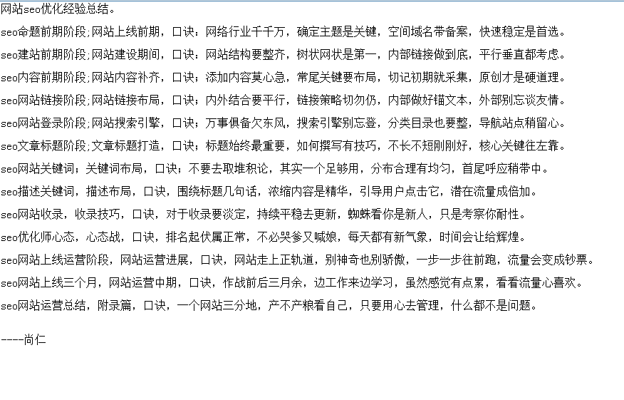 seo网站运营总结,附录篇,口诀,一个网站三分地,产不产粮看自己,只要用心去管理,什么都不是问题。