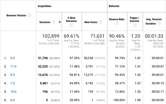 这种用户体验攻击在别的网站也看到了。比如下面抓图是一个客户的英文网站IE浏览器访问统计: