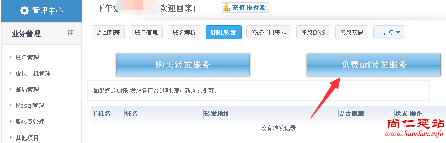 5.在进入到URL转发服务页面后,可看到付费和免费的两种模式,当然这里我们一般选择免费的。