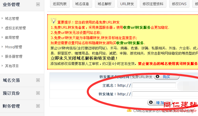 6.在我们点击免费转发的功能按钮后,进入到转发设置的页面,这里我们需要输入转发地址即可。