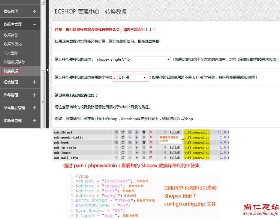 ecshop后台详解数据库管理转换数据