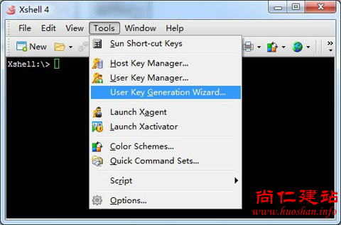 打开Xshell,在菜单栏点击“tools”,在弹出的菜单中选择“User Key Generation Wizard...”(密钥生成向导),如下图: