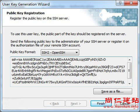 点击“Save as file...”按钮,将公钥(Public key)保存到磁盘,文件名为“key.pub”