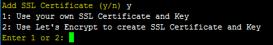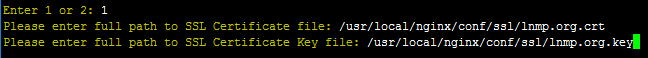 > > 提示Please enter full path to SSL Certificate file 后输入要SSL证书的完整路径和文件名,回车确认。