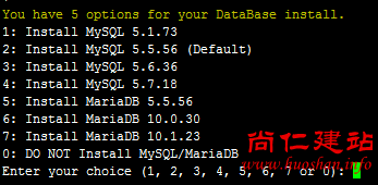 输入对应MySQL或MariaDB版本前面的序号,回车进入下一步.