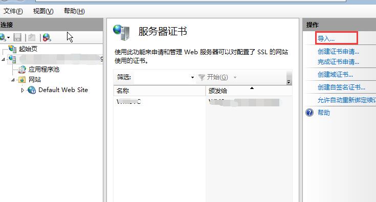 打开IIS服务管理器,点击计算机名称,双击‘服务器证书