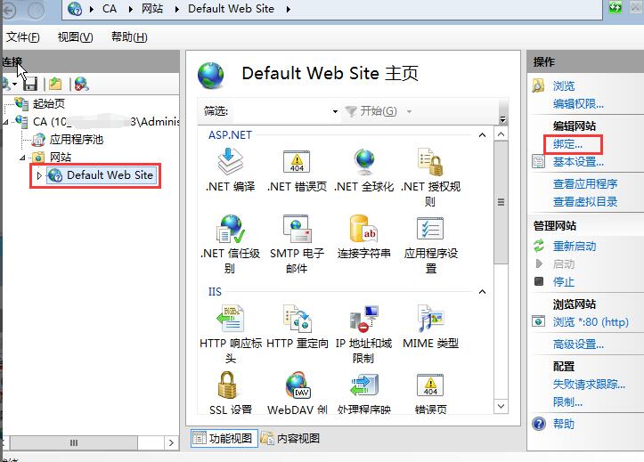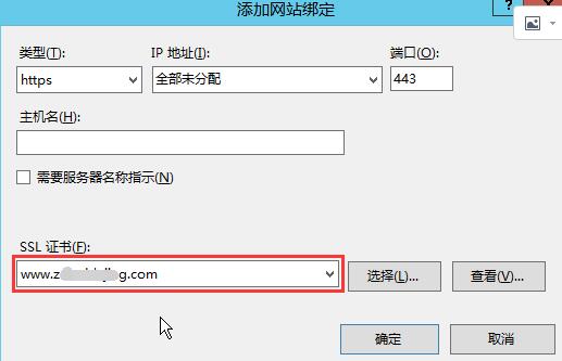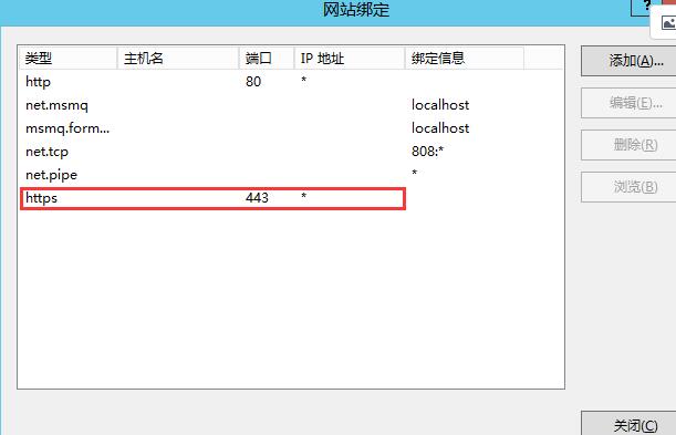 添加网站绑定内容:选择类型为https,端口443和指定对应的SSL证书,点击确定