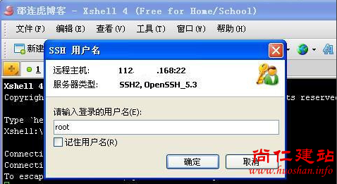5.第五步,输入服务器的用户名(购买服务器时候的),一般是root ,然后点击确定