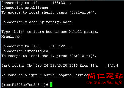 [root@iZ23ae7oe24Z ~]#就说明连接成功了