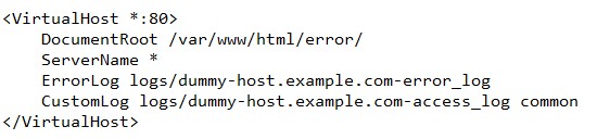2、 然后加入以下代码,作用是当客户端携带的 host 头不在之后设置的网站域名内时,指向一个 403 错误页面告知用户域名非法,其中 DocumentRoot 即是放置错误提示页面的目录,在下面可以放置一个简单的 html 页面提示用户访问的域名非法。