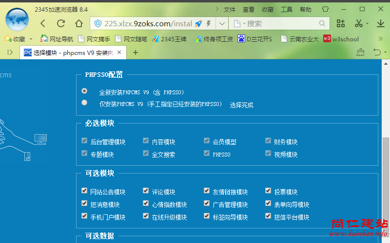 PHPCMS开源系统集成了管理,公告,评论等诸多模块,安装时可根据需要选择或不选择安装,如图: