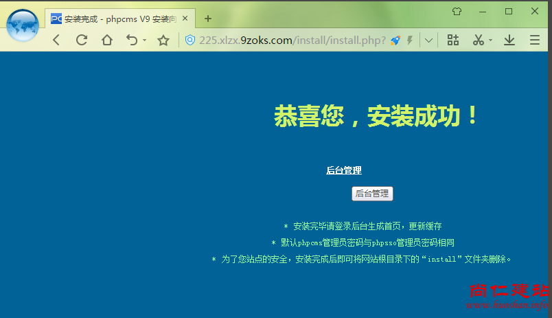 11、第十一步:完成安装并登陆到后台