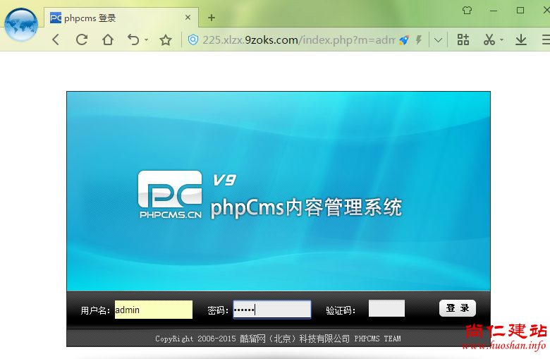 安装完成之后程序会直接跳转到后台登录地址,输入登录信息即可登入后台,如图: