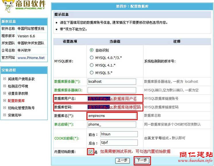 ·内置初始数据:是帝国CMS系统的初始测试数据,提供数据演示功能。如勾选√本功能,则安装完毕后,网站将导入系统初始数据。