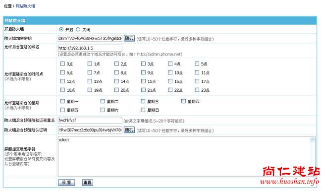 此功能是安全防火墙的核心,可对前台用户所有录入的信息进行安全过滤。通常设置php、mysql等攻击的相关字符。