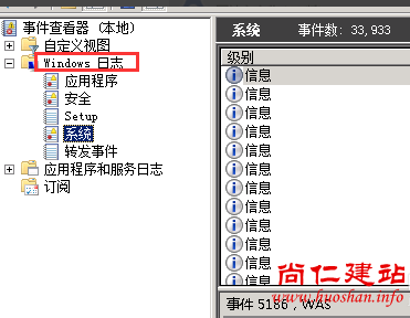 4.进入事件查看器,展开Windows日志,点击系统,右侧会显示出信息。
