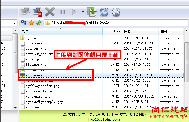 3.用ftp工具:flashfxp上传压缩网站文件包到新主机空间根目录。