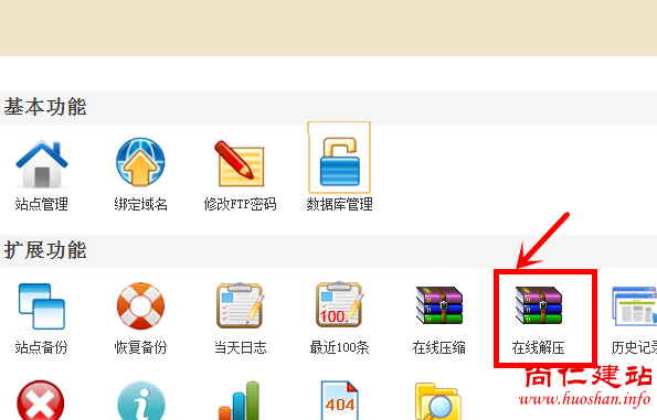 4.登录新主机空间的控制面板,解压上传的文件到网站更目录。到这一步网站文件的转移工作已完成。