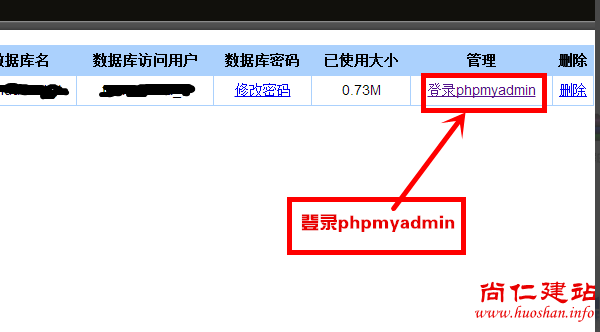 1.登录旧的空间控制面板,进入数据库管理,登录phpmyadmin管理。