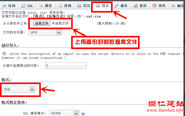 4.上传备份好的数据库文件,点击执行,数据库将自动导入数据,数据库转移基本完成。