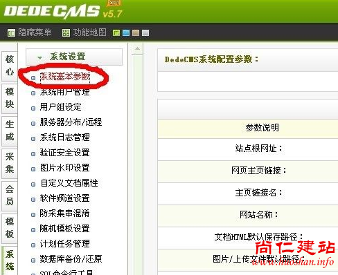 2.进入织梦后台,点击系统,点击系统基本参数,进入到系统配置参数界面。