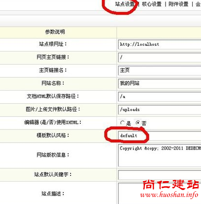 3.点击站点设置,然后找到模板默认风格,把它改为你新建的文件夹名称即可,默认为default。