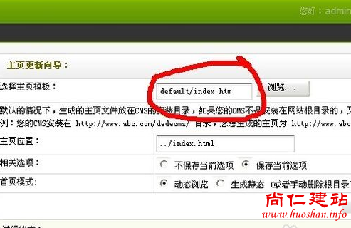 5.只要把选择主页模板的目录改为你新建的文件夹名称即可,像是小编就应该改为new/index.htm,默认的是default,如果你只是更改了默认模板风格而没有更改这里,会出现错误。