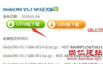 第二步:去织梦dedecms官网下载程序如下图,推荐UTF8格式。一般下载解压到E盘。