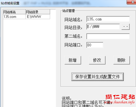 第四步:打开phpstudy配置站点域名,如下图:本站测试为135.com域名,站点目录为\:WWW(域名随便搞)