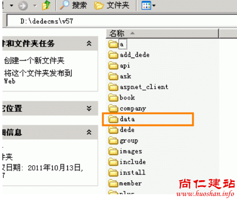 我们这里以“D:\dedecms\v57”为例,当作我们系统的根目录,我们需要将目录下的data文件夹(如下图)迁移要上一级目录(非Web目录),简单的办法直接剪切或者拷贝即可。