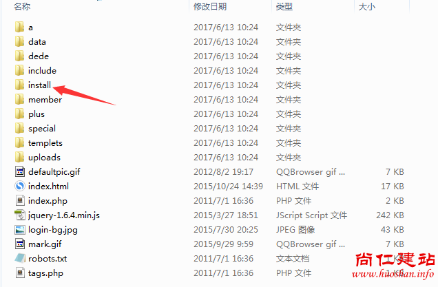 3. 新空间安装DeDeCMS的方法:删除空间上的install(如果还存在)文件夹,在织梦官网上下载和你网站版本一致的源程序,将压缩包里面的 install文件夹上传至新空间,然后运行http://你的域名/install进行安装。