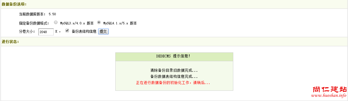 首先要做的是将我们的网站进行数据库的打包,对于织梦系统的网站来说,只需要在后台选择【系统】-【数据库备份/还原】选项即可,而后等待数据备份完成!
