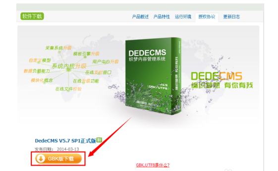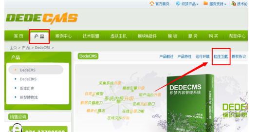 我们在百度中搜索“dedecms”进入对应官网下载对应的源码程序。