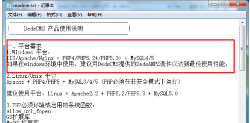 进入解压目录,找到类似“readme.txt”类似的文件打开,其中就会对源码运行环境需求进行详细的说明。根据说明来进行具体程序的安装及环境搭建操作。