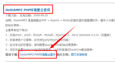 在此我们使用“梦织”官网所提供的整合搭建环境套件,在网站源码下载的同一页面就可以找到,如图所示,点击相应的链接进行下载。