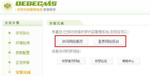 最后分别使用“http://localhost/index.php”和“http://localhost/dede”进入网站首页、后台管理入口。