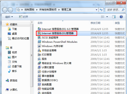 在打开的窗口中双击“Internet信息服务(IIS)管理器”。