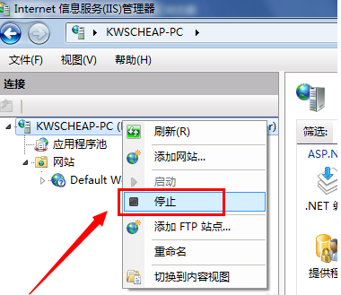 接着在打开的窗口中,找到网站链接,右击选择“停止”项就可以实现暂停IIS服务器。