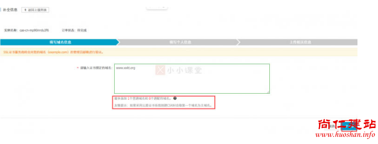 域名填写,只能是一个普通域名,不能是通配符域名。这句话的意思是说,只能是一个普通域名,不能使用通配符来表达所有的网站子域名。所以我在这里写了www.***.org,而并没有填写***.org。