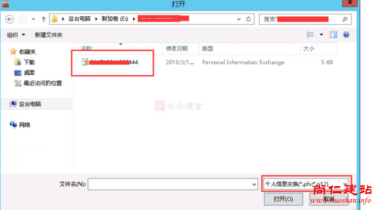 右下角勾选“个人信息交换(*.pfx;p12)”。选择类型为“Personal Information Exchange”的文件即可。