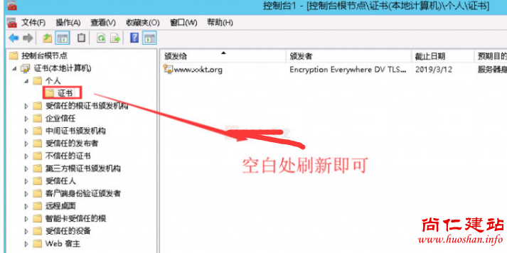 打开“证书”>右键“个人”>“所有任务”>“导入”。