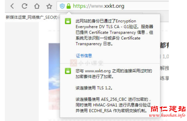 将首页、栏目页和内容页进行了几个浏览器的效果测试,均有安全网站标志。