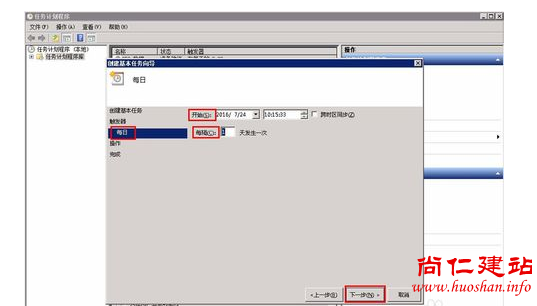 5.在每日界面,设置计划任务的开始时间和间隔时间,点击下一步,进入操作界面。