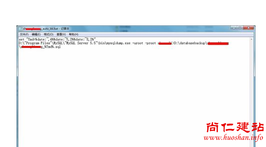 8.程序的脚本内容如下:其中,D:\databasebackup\***\***_%Ymd%.sql,是设置数据的备份路径以及命名格式。